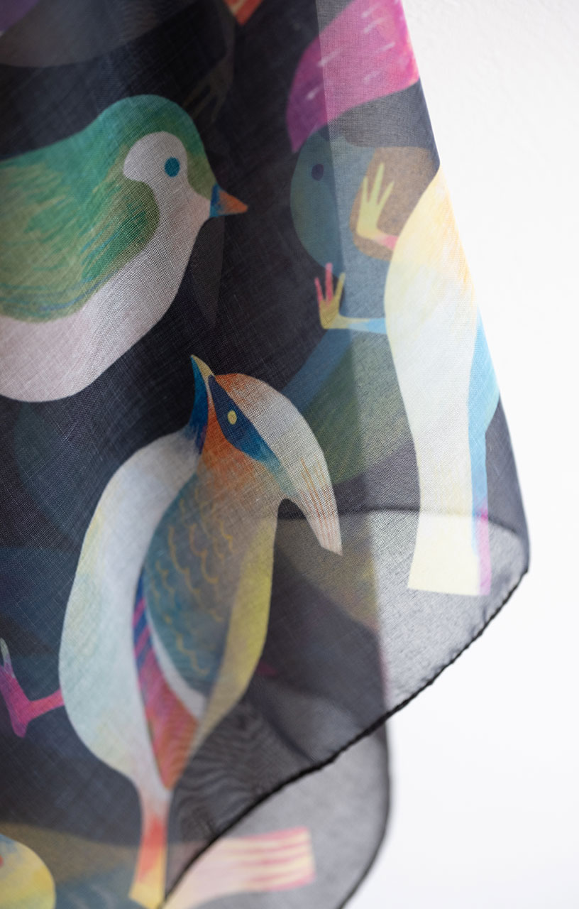 今回は、旭川を拠点に活動するイラストレーターのOCCAさんとkanakoronさん(fumiぱん)とのコラボレーションから生まれたスカーフをご紹介します。